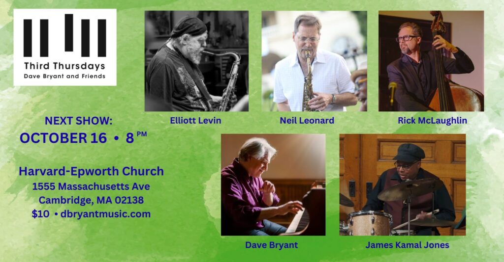 On Thursday, May 15, 2025, Dave Bryant (keyboards) was joined by two of his very favorite side-people, John Turner (bass) and Miki Matsuki (drums). This was the first time they’d played together in a while, so join a great musical reunion at Harvard-Epworth Church!